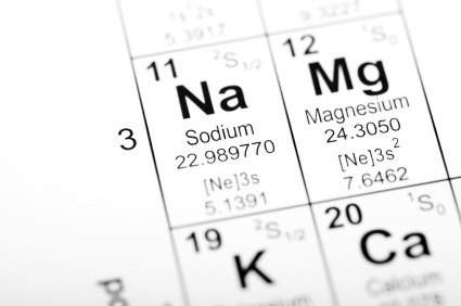 Periodic table - MgMagnesium deficiency can be acquired many ways. A decrease in dietary consumption of magnesium has gone from 500mg/day in 1900 to 215-283 mg/day in 1990.[3], [4] It is estimated that the typical dietary intake of magnesium today in the U.S. provides only 35-75% of the recommended daily amount.[5]